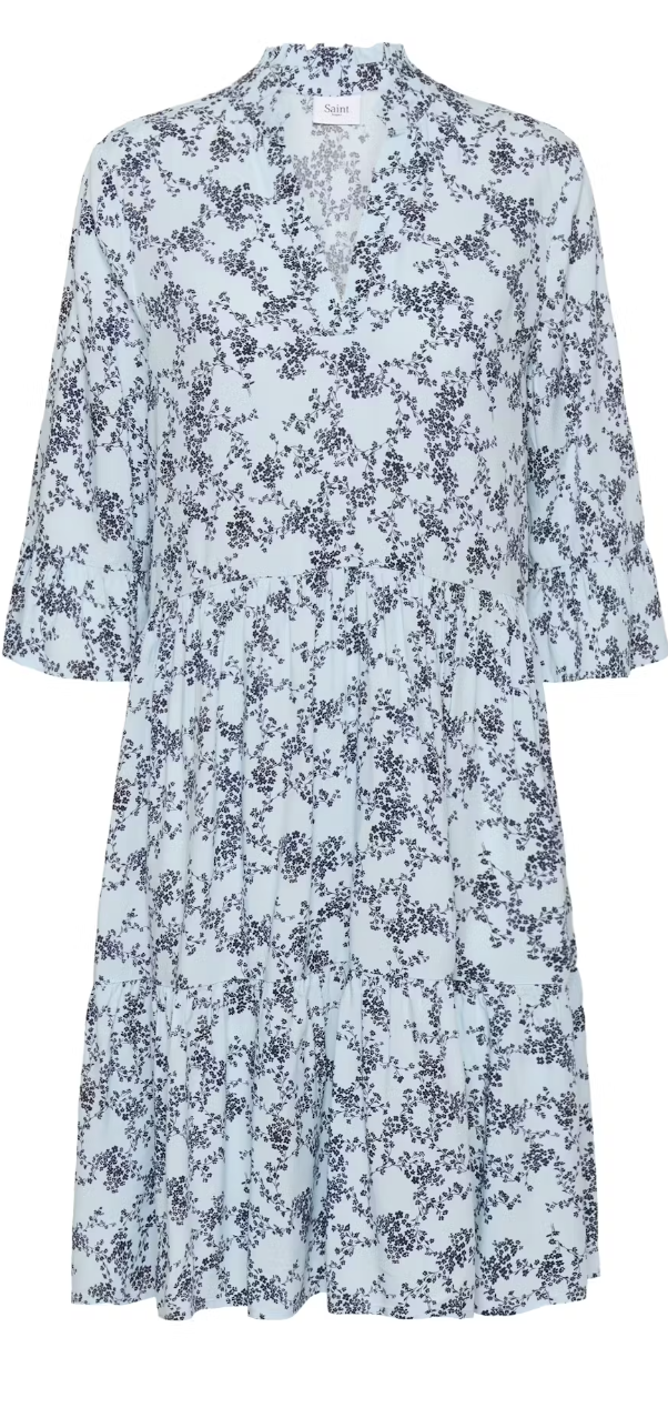 Saint Tropez brings us the Eda Dress in Skyway Blue Spring Floral print and relaxed fit featuring a flowing silhouette, V-neckline, and tiered design for all-day comfort. Additional style details are the three-quarter sleeves and knee-length cut.